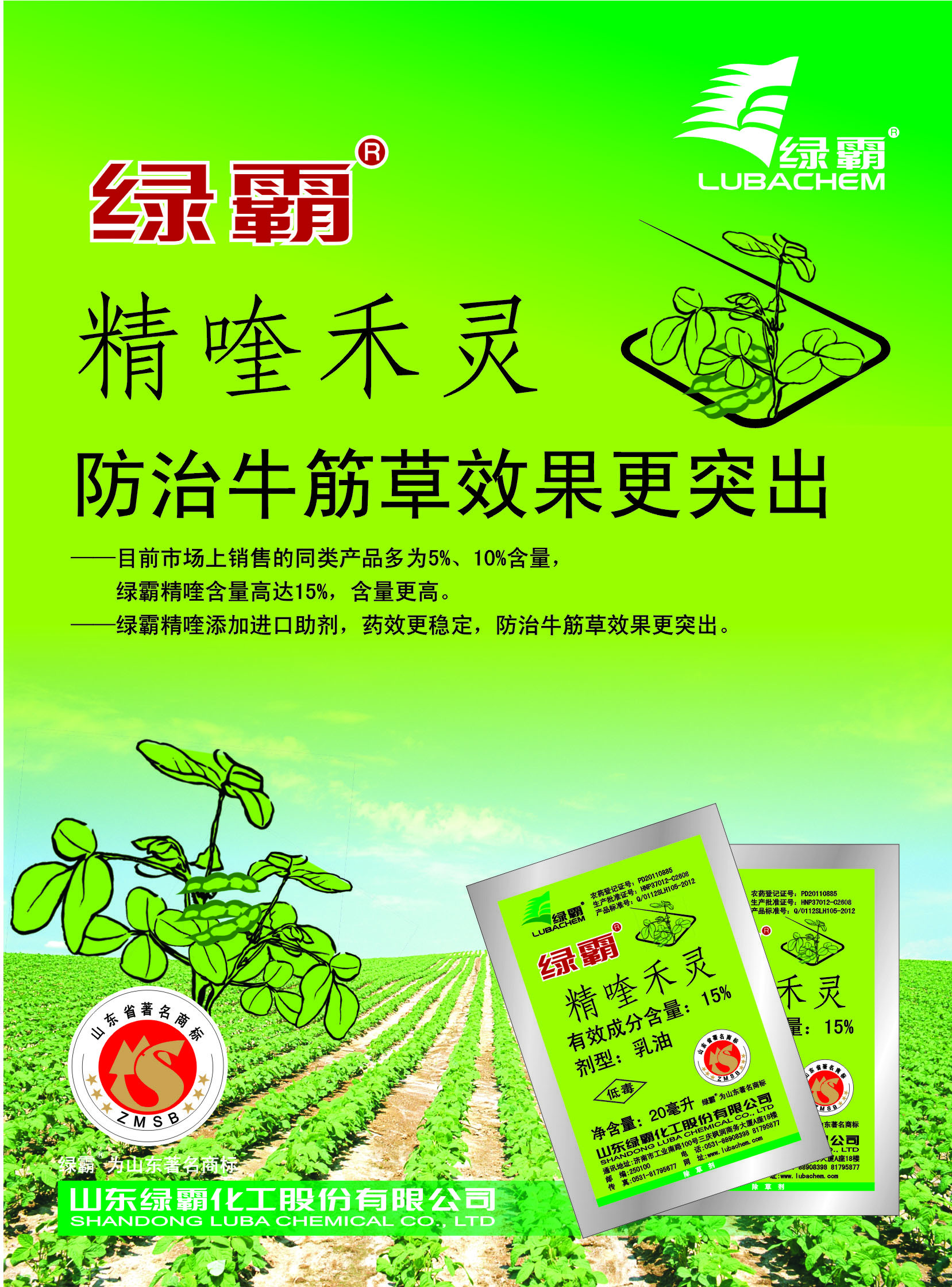 本品也是一种高度选择性的寒天茎叶处理剂,在禾本科杂草和双子叶作物间有高度的选择性,对阔叶作物田的禾本科杂草有很好的防效。